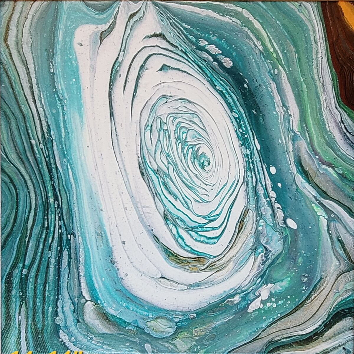Ring & cloud pour, 14" x 14" canvas painting. I'm unable to title this beauty...