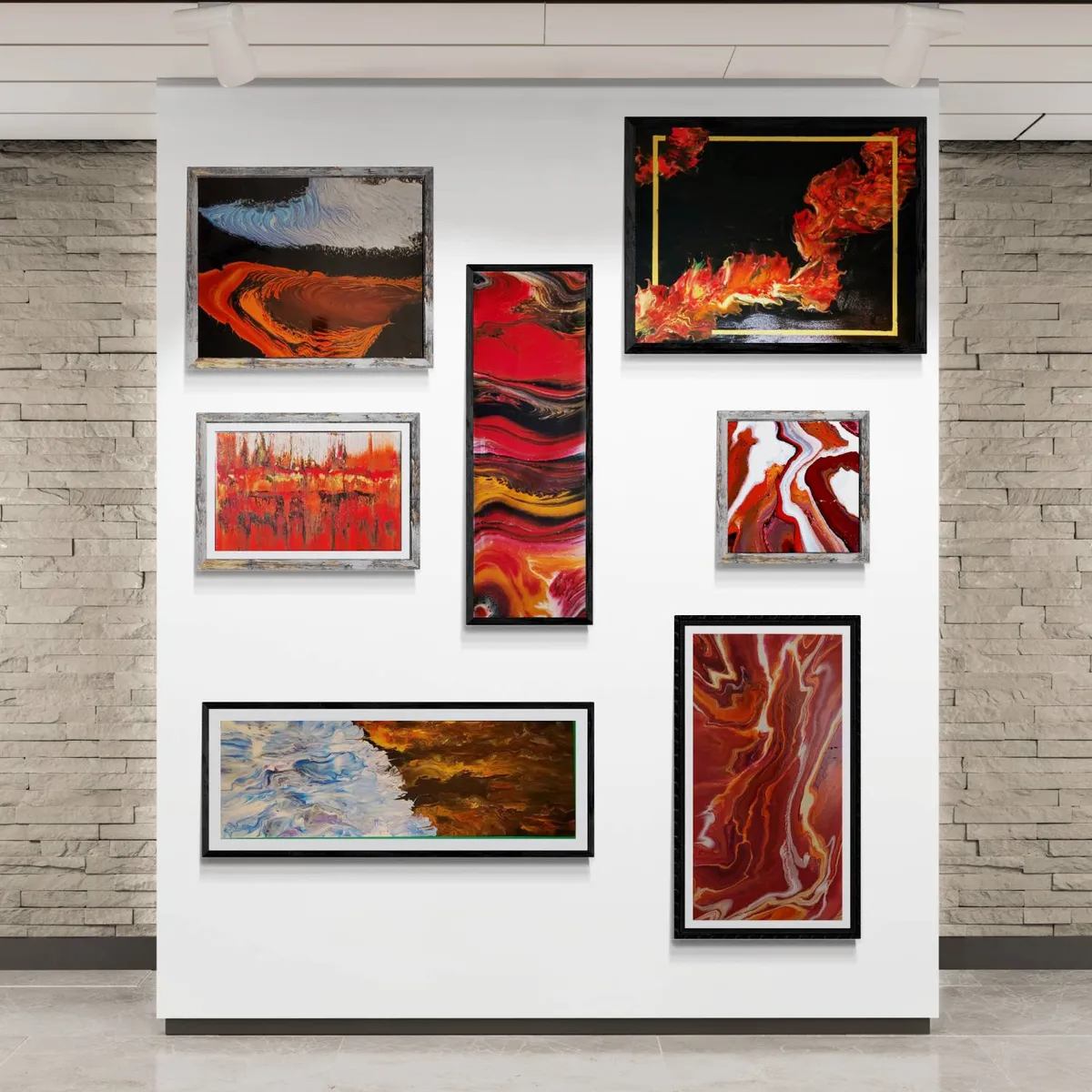 12x12" gallery wrapped acrylic painting Colors are black, orange, white cloud mix