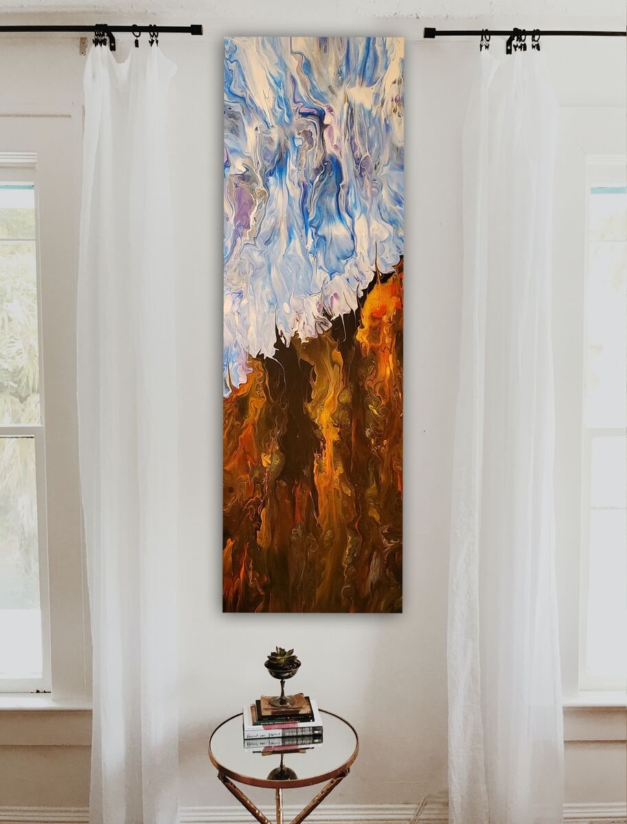 Cliff of Fire and Ice 12" x 36" canvas Fluid art painting
