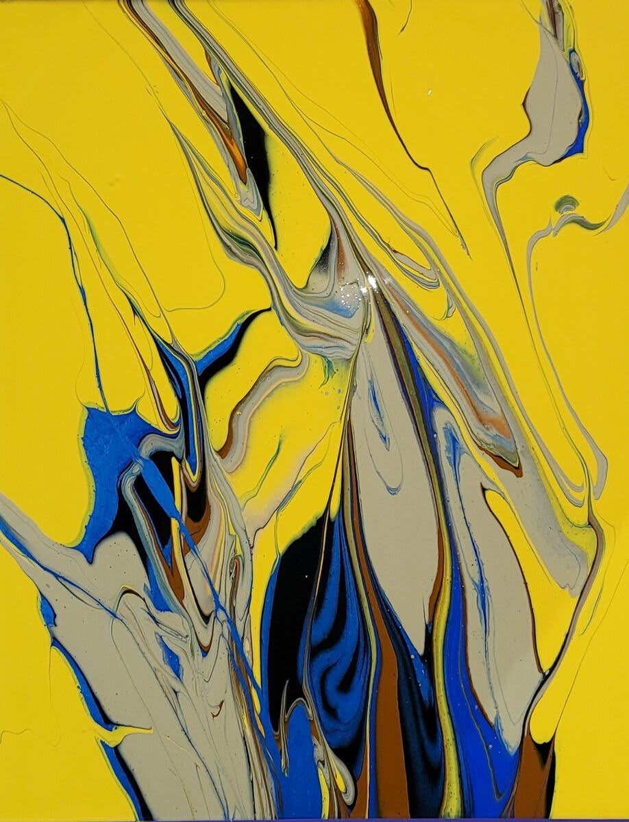 "Deer Season" 8 Aug 2022 18" x 24" fluid art painting. technique featured here was the 'ninja swipe'. A term coined by artist Sarah Mack of Sarah Mack Art.